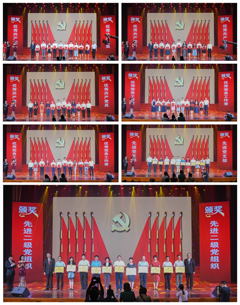 优秀共产党员、优秀党务工作者、先进党支部、先进二级党组织代表领奖