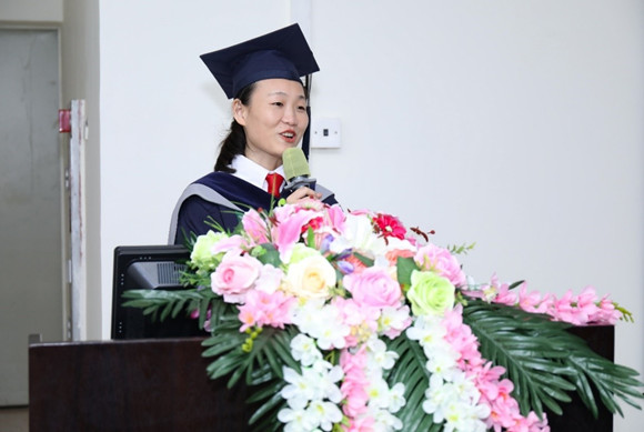 硕士生廖芳捷同学代表全体毕业生发言。她感谢学校和学院老师们三年来的悉心教导和精心培养,在老师们的言传身教中,学会了分析与思考,学会了丰富与凝练,学会了合作与竞争,学会了继承与创新。她将以博彩平台推荐物理与天文学院2019级博士生这个身份继续在学校和学院的关怀下学习、成长。