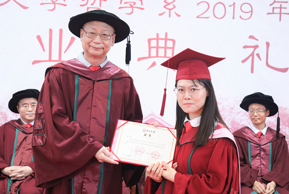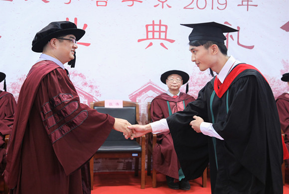 系主任张伟教授为学士学位获得者颁发毕业证书