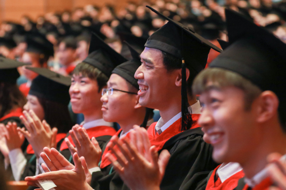 在穹顶点点灯光的映照下,梁銶琚堂熠熠生辉。第三次担任执权杖教授的陈新滋院士,在同学们的欢呼声中举步入场。“我每年看到学生毕业都非常高兴,学生的成功对老师来说是最大的安慰。”在他眼中,青春的底色就是奋斗。“年轻的时候如果培养了奋斗的精神,就会一辈子都保持这种精神。不论我们处在什么环境,都应该为了社会国家努力奋斗。”