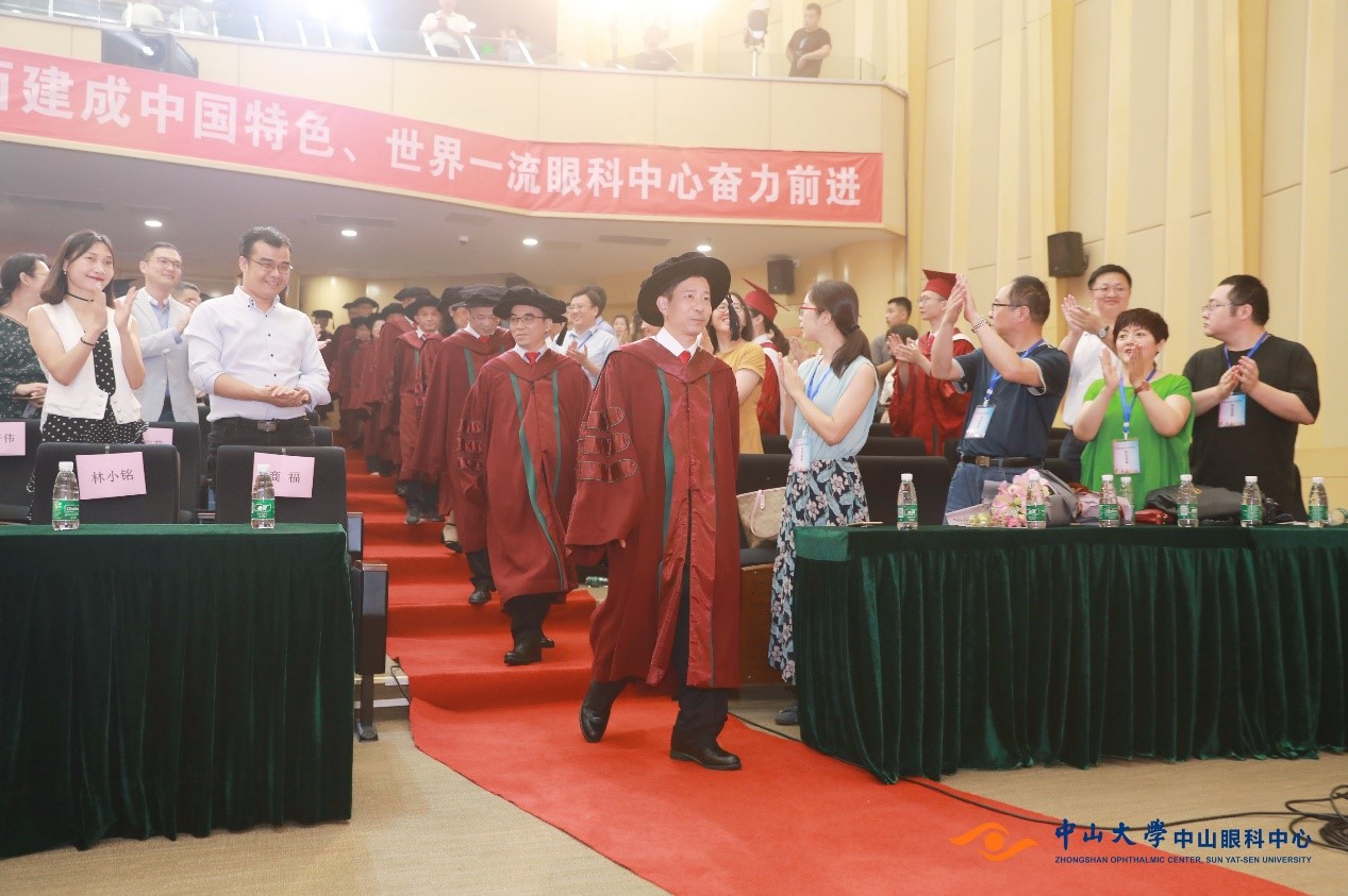 下午三时,校歌悠悠,掌声雷雷,中山眼科中心的主礼教授们走上舞台落座。随后,在庄严肃穆的国歌声中,毕业典礼拉开序幕。