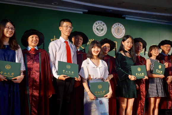 张均教授宣读校学位评定委员会关于授予学士学位的决议。彭玉平主任与全体导师上台为学士学位获得者颁发学位证书,毕业生们上台接受证书并与导师们进行合影。