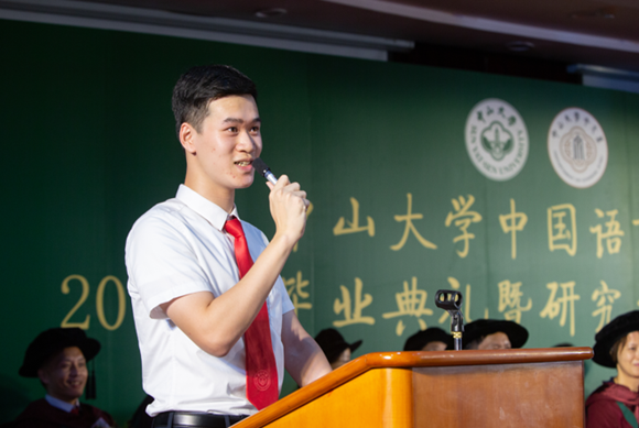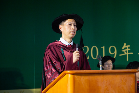 导师代表黄仕忠教授寄语毕业生,他从“百篇作文”开始,回忆了本科、硕士、博士三个阶段的学习,表示学习不是一件易事,希望同学们勇敢地去面对生活的酸甜苦辣,努力担当起国家民族和社会的责任,在未来的工作和学习中不忘初心。