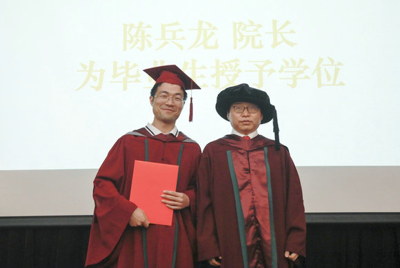 随后,陈兵龙院长一一为获得硕士、博士学位的毕业生们握手,颁受毕业纪念册,与毕业生互相鞠躬,共同合影……台上的每一个动作都凝聚着浓浓的师生情,寄托着师长对学子的殷切期望,展现了学子对师长的拳拳眷恋。台下的每一个眼神、每一处掌声,都饱含着师长、同学、亲友深深的祝福、喜悦与欣慰。短短几分钟,已然凝成了一份份关于母校的共同记忆,定格为一幅幅镌刻心间的永恒画面,将此生珍藏。