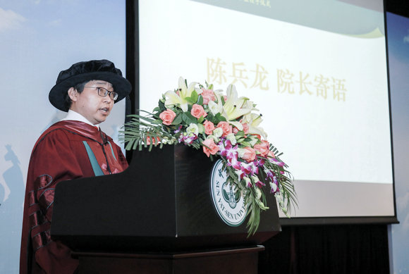 陈兵龙院长代表全院教职员工向毕业生们表示由衷的祝贺,为每一位家长的无私付出表达真诚的感谢。他说,著名数学家华罗庚先生曾说“宇宙之大,粒子之微,火箭之速,化工之巧,地球之变,生物之谜,日用之繁,无处不用到数学”,国家重视基础研究,只有基础的突破,才能带动一个面的突破,而数学是基础科学里的基础,我们每一位毕业生都应抓住新时代的脉搏,在追求数学与科学梦想的道路上继续努力。