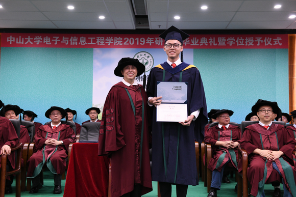 6月24日上午,电子与信息工程学院2019届研究生毕业典礼暨学位授予仪式在东校园微电子大楼举行。电子与信息工程学院院长邓少芝教授、副院长陈弟虎教授、副院长龙云亮教授、40余名主礼导师出席仪式, 2019届研究生毕业生、家属亲友及学院教师代表共400余人参与典礼活动。仪式由学院党委副书记王琅主持。