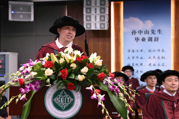 第一,志存高远,永怀探索之心。当今中国正以前所未有的昂扬姿态迎接世界关注的目光,当然,也将面临来自未知的挑战。这其中,改变世界的核心力量是科学技术。习近平总书记指出,科学技术从来没有像今天这样深刻影响着国家前途命运。而各位所学之长正顺应了现今国家和世界发展之需要。希望大家在实现个人发展的同时,要坚持面向世界科技前沿、面向经济主战场、面向国家重大需求,把实现国家需要和行业发展与实现个人价值同步同行,不断践行中山先生“博学、审问、慎思、明辨、笃行”的十字校训,不断探索新领域、思考新问题、开拓新思路、创新新技术,用聪明才智给世界和人类带来更多进步和突破。
