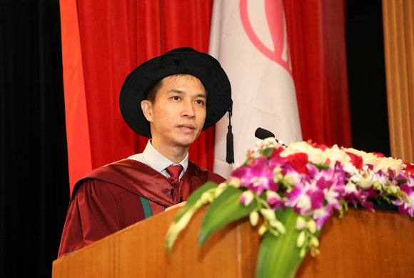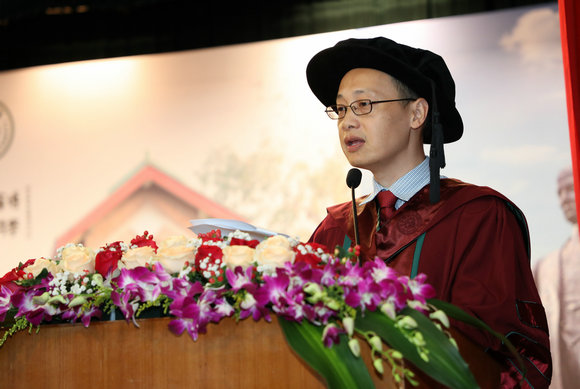 岭南学院金融学系主任杨子晖教授作为导师代表发言。他表达了自己激动喜悦的心情,祝贺同学们顺利毕业,开启新的人生征程。他回望了自己21年前在岭院的求学经历,总结了去年学院在教学成果、科研立项、社会服务等方面取得的突破,并将成就归功于老师们的辛勤付出和在座同学们的努力奋斗。他把习近平总书记的话送给大家:现在,青春是用来奋斗的;将来,青春是用来回忆的。有信念、有梦想、有奋斗、有奉献的人生,才是有意义的人生。他以“铭记责任,勇于担当,牢记使命,不忘初心”与师生共勉,希望同学们能在美好的年华中砥砺奋进。