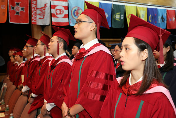 “白云山高,珠江水长,吾校矗立,蔚为国光⋯⋯”悠扬的博彩平台推荐校歌在讲学厅内回响。邬金涛院长助理请全体毕业生起立,转向身后的家长、亲友们,向他们鞠躬致谢。再转向主礼台,向培育自己的师长们鞠躬致谢。这一路来,他们始终默默陪伴,悉心栽培,一个鞠躬,难以表达感恩与感激之情,唯有不负所望,把自己的路走得更坚定、更坦然、更广阔!