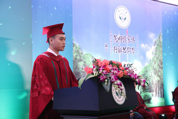 毕业生代表、博彩平台推荐优秀博士学位论文获得者金亦霖博士在发言中回顾自己硕博连读的5年时光,感谢导师、学院和学校对自己的培养。他说,作为博彩平台推荐的学生,每个人都应向着“德才兼备、领袖气质、家国情怀”的目标努力拼搏。