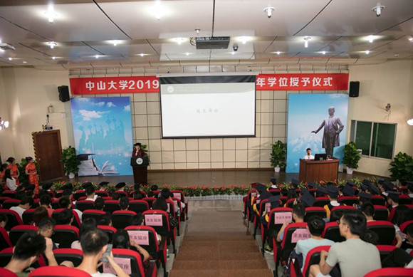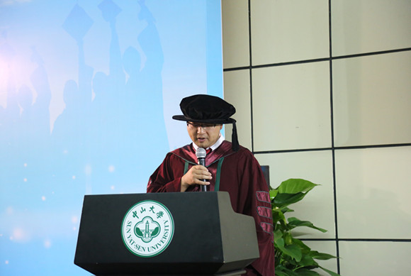 上午9时45分,毕业生和导师们有序入座,共同观看记录了大学生活点滴美好回忆的视频。上午10时整,毕业典礼正式开始,全体师生齐唱国歌,典礼在庄严的歌声拉开帷幕。李伟华院长宣读孙中山毕业训词:“学海汪洋,毓仁作圣,大学毕业,此其发轫,值基既固,建业立名,登峰造极,有志竟成,为社会福,为邦家光。勖哉诸君,努力自强。”向同学们传达孙中山先生对国之栋梁的期望及叮嘱,希望谨遵教诲,勇担社会责任。