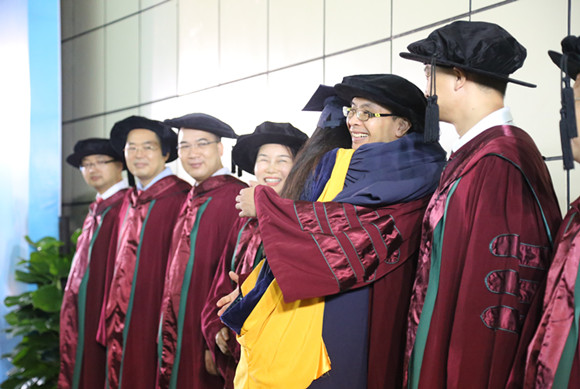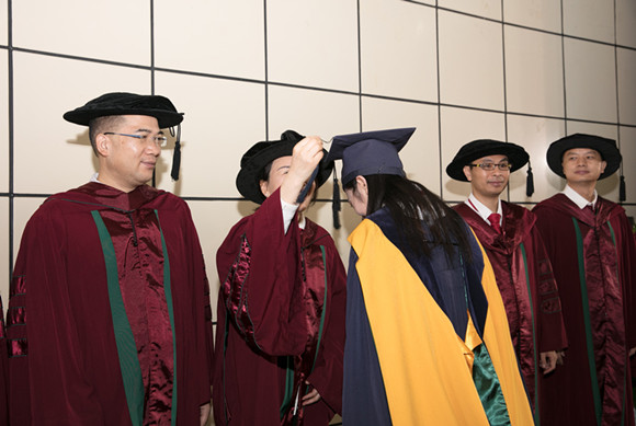 院长为获得学位的毕业生拨穗