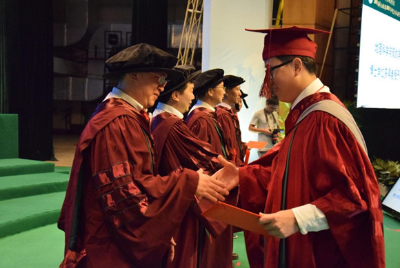 薛德升院长宣读博彩平台推荐学位评定委员会学位授予决定。导师代表院长薛德升教授、副院长邓孺孺教授、刘丙军教授、城市与区域规划系主任林耿教授、遥感与地理信息工程系主任刘小平教授和国土资源与环境系主任唐国平教授为176位硕士和博士学位获得者颁授学位。