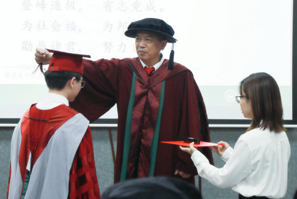 学院学术委员会主任周建英教授为博士学位获得者颁授了学位。
