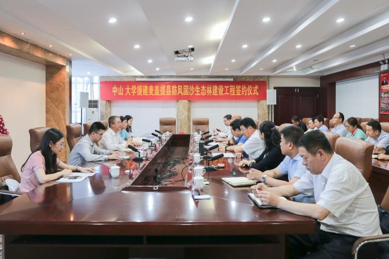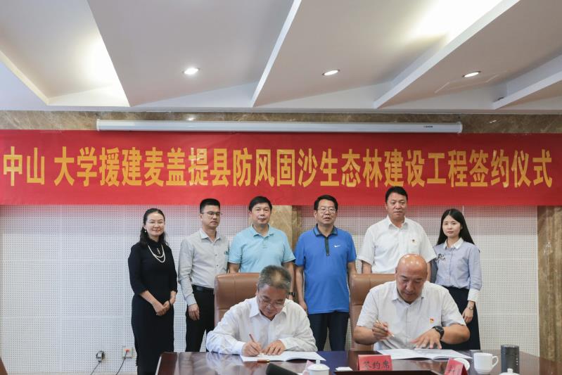 6月15日,我校援疆防风固沙生态林建设签约仪式在麦盖提县委宾馆二楼会议室举行。中共喀什地委副书记、广东省援疆工作前方指挥部总指挥贺宇,我校副校长杨清华、校长办公室主任杨建林,我校援派附属喀什医院院长张琪,我校惠来校友联络处副会长吴荣凯,中共麦盖提县委书记文福来、县相关领导、相关部门负责人,以及我校部分援疆干部参加仪式,仪式由中共麦盖提县委副书记、县长艾尼瓦尔·吐尔逊主持。