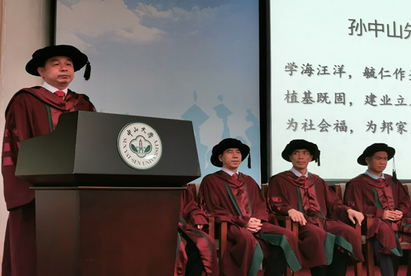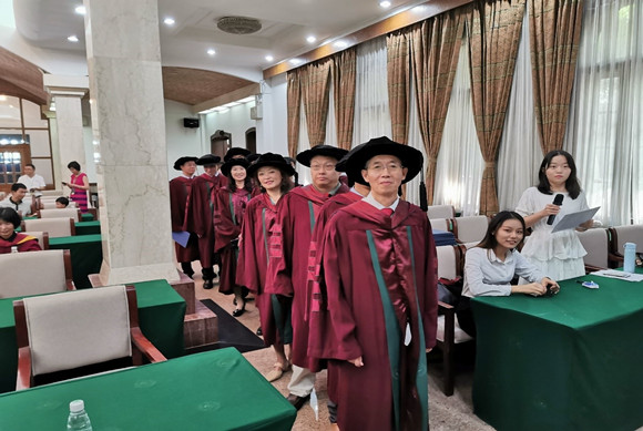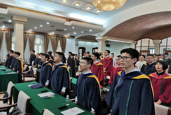 学位颁授完毕后,全体与会人员齐唱校歌。礼成。