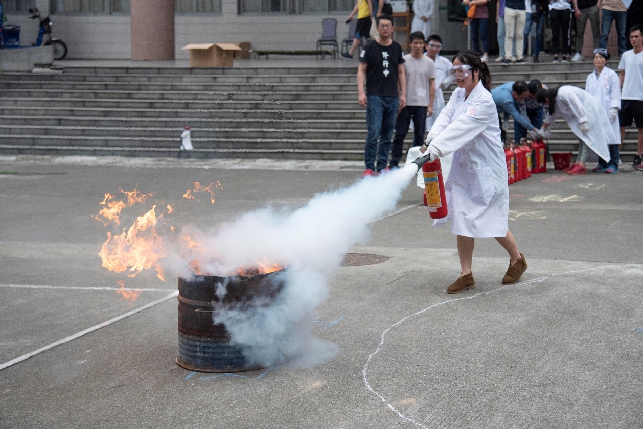 在演练现场,工作人员根据实验室经常遇到的场景,模拟设置了固体化学品所致火灾、可燃液体所致火灾、流淌火火灾以及仪器、书籍纸张所致火灾等4种场景,分别演练二氧化碳灭火器、泡沫灭火器、水基灭火器、灭火毯和灭火沙等不同器材的使用方法。300余名师生参加了演练,其中约100名师生学习使用了不同灭火器对不同场景的针对性灭火处置。