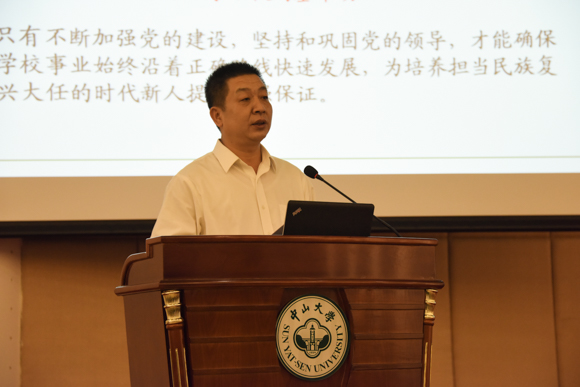 我校党委副书记余敏斌从党建育人的视角,作了“加强党的建设 培养时代新人”的专题报告。