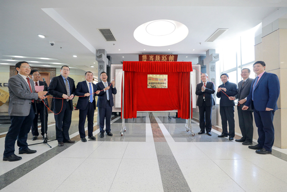 在肿瘤防治中心,罗俊校长一行参观了华南肿瘤学国家重点实验室,并参加了肿瘤医学省部共建协同创新中心揭牌仪式。座谈会上,罗俊校长对中心的发展提出五点要求:一是坚持“三个面向”,落实广东省“登峰计划”的要求,努力实现从“走在前列”到“引领发展”的提升;二是坚持“三大建设”,以建设“大平台、大团队、大项目”作为实现新发展的重要抓手;三是坚持“以临床为导向”,从解决临床实际问题入手进行科学研究探索;四是坚持“以人民为中心”,针对老百姓的诊疗需求,尽全力提供更优质高效的医疗服务;五是探索“医工结合”,有组织、有计划、有目的地开展医工结合,提高“高精尖”医疗设备的自主研发能力。