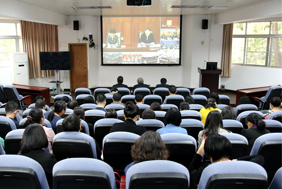 28日,2019届全国普通高校毕业生就业创业工作网络视频会议在京召开,教育部党组成员、副部长林蕙青出席会议并讲话。我校在广州校区南校园设立分会场。校长罗俊、校党委副书记余敏斌出席会议,党委学生工作部和产业集团相关人员、各二级学院副书记和辅导员共计60余人集中观看并认真学习了会议精神。