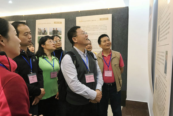 学员们参观“赤心追梦 铸魂丹霞——彭华教授专题展览”