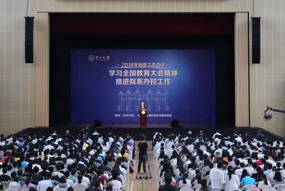 10月13日,我校2018年秋季工作会议在珠海校区拉开序幕。本次会议以推进院系办校为主题,旨在凝聚广大师生的智慧和共识,推动内涵发展,为实现中国特色世界一流大学的目标奋勇向前。全体校领导、校长助理,各院系、职能部门、各附属医院等二级单位负责人,各类人才、委员会成员等教师代表,以及学生代表等出席会议。此次会议在广州校区南校园、北校园、东校园和各附属医院共设有18个视频分会场进行直播。