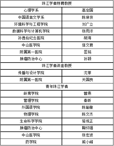 附:2018年“珠江学者岗位计划”我校聘任人选名单