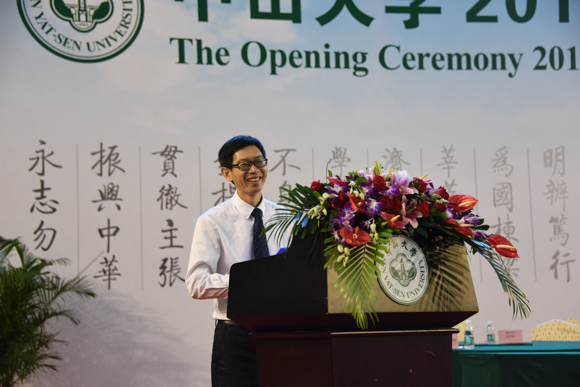 校领导陈春声、罗俊、黎孟枫、李善民、朱熹平、余敏斌、杨清华、王雪华,教师代表中国科学院院士、地球科学与工程学院高锐教授,中国工程院院士、生命科学学院林浩然教授,中国科学院院士、化学学院计亮年教授,以及各院系、附属医院负责人等出席开学典礼。开学典礼由黎孟枫副校长主持。
