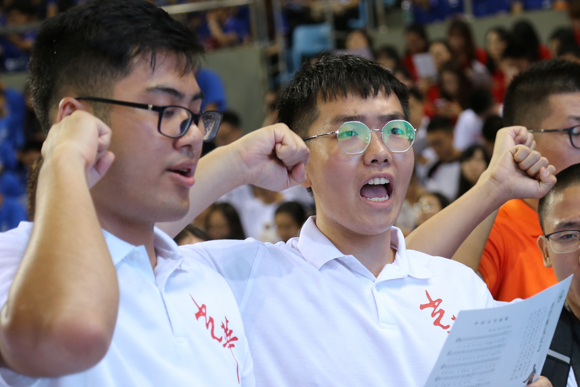 在全体师生热情、激昂合唱校歌声中,开学典礼结束。新同学们备受鼓舞,即将开启新的人生征程。