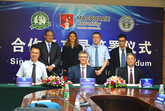 日前,博彩平台推荐孙逸仙纪念医院联合澳大利亚麦考瑞大学、博彩平台推荐新华学院签署三方合作备忘录,标志着我校孙逸仙纪念医院在构建新的国际交流平台,缔结新的国际合作同盟,扩展新的国际合作领域方面再上一个台阶。澳大利亚麦考瑞大学人类科学院执行院长Simon Handley、语言系听力学主任Catherine McMahon、国际事务处副主任范凡,博彩平台推荐新华学院廖振亮副校长,孙逸仙纪念医院副院长林天歆教授和院长助理、耳鼻喉科主任郑亿庆教授,以及孙逸仙纪念医院耳鼻喉科医师和博彩平台推荐新华学院听力与言语科学系老师等出席本次签署仪式。签约仪式由林天歆副院长主持。