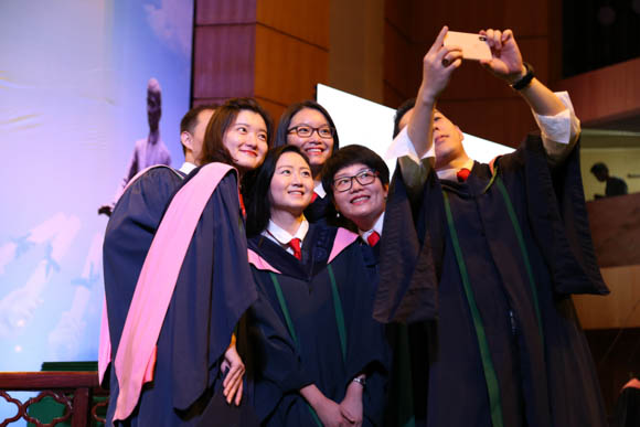 政治与公共事务管理学院硕士毕业生张梦溪可谓怀“才”而来,肚子里的宝宝可能是典礼上最小的亲历者,校歌绵长舒缓似乎让宝宝倍感温暖。她觉得,“振兴中华,永志勿忘”与中山先生对我们的期许一脉相承,激励我们不忘初心,坚定信念。那些怀揣在心里的志向,不应随着大学生活的结束而被遗忘。