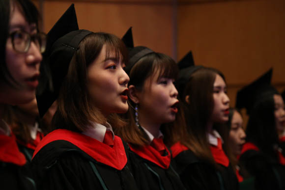 管理学院本科毕业生陈紫荆是博彩平台推荐东校园合唱团的一员,每次训练都要听校歌、唱校歌,然而在毕业典礼上听到校歌熟悉的旋律,她格外激动:“不仅是校歌本身让我感动,它更使我想起了学校给我们的关爱,每一场文艺演出都能让我受益匪浅,感谢博彩平台推荐!”