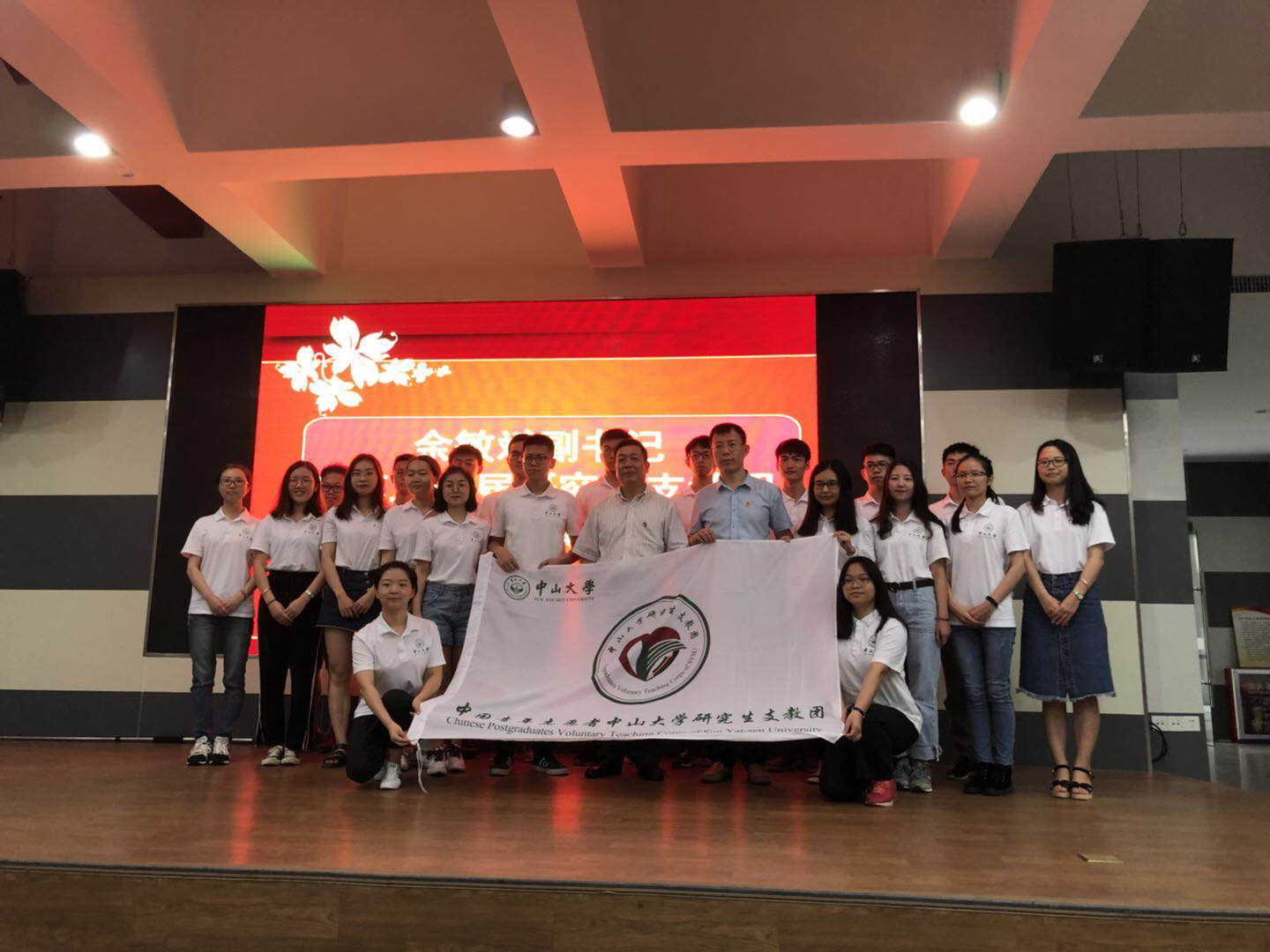 随后举行研究生支教团授旗仪式,余敏斌副书记将支教团队旗庄重地交到支教团队长的手里。
