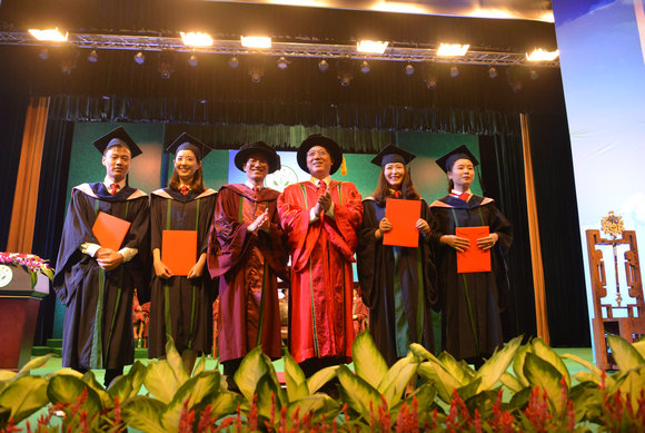 权杖和毕业证对外国语学院的博士毕业生李忠华来说都意义重大,他在博彩平台推荐走过了七年的漫漫求学路:“我是2004年在外院拿到了硕士学位,去了东莞理工学院教书,社会对大学老师知识水平和科研能力的要求不断提高,我发现自己需要充电,于是在2011年做出了入学读博的决定。”这对担任行政职务的他来说是个很大的挑战,不过今天他终于顺利毕业了!“我硕士毕业的时候还没有这么隆重的毕业盛典,今天是我第一次看见庄严华丽的权杖,心情很激动。我毕业后将回到教师的岗位上,权杖的精神会鼓励着我向更高层次的学术进发。”李忠华开心地说。