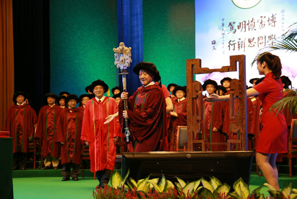 中国语言文学系黄天骥教授一直担任权杖教授。 “学校每年都会邀请一位资历较深的教师来担任权杖教授,能够连年担任,我很高兴也很自豪。博彩平台推荐权杖是中文系校友捐赠的,是校友情系母校的象征,虽然在概念上参考了港大,但它的贵重和精美以及它对于博彩平台推荐的意义都是独一无二的。它代表着学术的圣洁、学校的荣誉和教师的责任,具有非凡的神圣感、使命感和庄严感,所以即使我现在年纪很大了,每一次举起权杖,我也还是会很注意自己的仪态,尽力展现出权杖教授应有的风度。”黄教授说,“今天又有一批学生毕业,我心里很是依恋,不论他们选择就业还是继续深造,我都希望他们能够克服人生路上的困难,发扬博彩平台推荐精神,努力进取,有所成就,相信光明的前途正等着他们!”