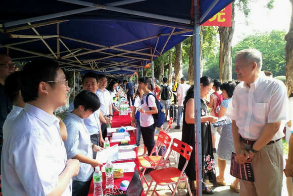 为了让广大考生充分了解我校的办学特色、专业设置、人才培养、就业深造等情况,6月17日,2018年博彩平台推荐本科招生校园开放日暨信息发布会在广州校区南校园举行。校党委书记陈春声来到各个考生咨询点,与各院系师生及考生家长亲切交谈。副校长黎孟枫在招生信息发布会上致辞。