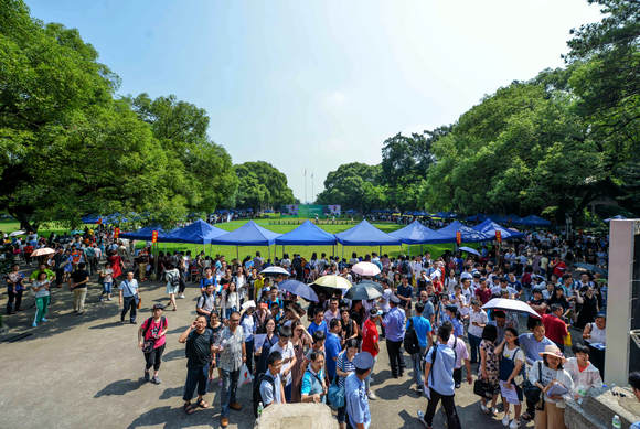 51个学院、直属系,多个相关职能部门在中区大草坪设置展台,500余名教职员工和学生参与校园开放日活动,和考生、家长进行面对面交流。开放期间,25个院系的优秀学生代表在怀士堂依次演讲,为考生和家长介绍自己的大学生活。中区大草坪中央放置两块大型LED屏幕,滚动播放学校及院系相关介绍视频。