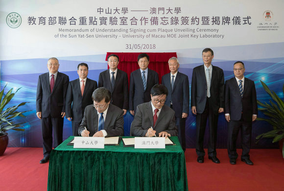 5月31日,我校生物无机与合成化学教育部重点实验室与澳门大学应用物理及材料工程研究所在澳门大学签署合作备忘录,共建教育部联合重点实验室。教育部副部长杜占元,澳门大学校董会主席林金城,教育部科学技术司司长雷朝滋、研究生司司长李军、科技发展中心主任罗方述,澳门大学校长宋永华以及我校副校长李善民等出席了联合重点实验室签约及揭牌仪式。