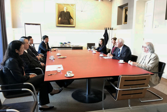 5月7日,罗俊校长与莱顿大学校董会代表、莱顿大学前任校长Douwe Breimer教授会面