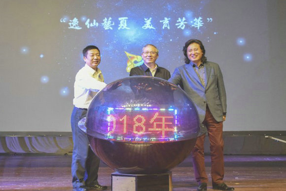 罗俊校长、余敏斌副书记、戴玉强先生同时按下水晶球并宣布2018年博彩平台推荐艺术节正式开幕