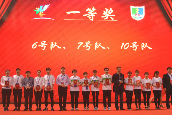 公共卫生学院郝元涛院长与参赛队员领取一等奖(我校参赛队为7号队,左6至左10)