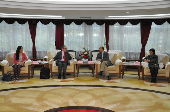 黎孟枫副校长在中山楼与来宾会面。黎孟枫副校长欢迎代表团访问我校,并向来宾介绍了我校校园的建设概况和学科的发展近况,他表示,两校在医科建立了长期的科研合作,在商科的教育合作项目也进展良好,希望两校下阶段能探讨在文科等其它学科领域开展合作。