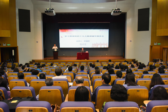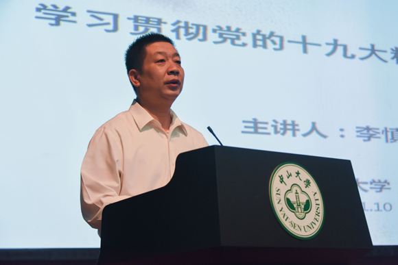 11月10日上午,我校在广州校区南校园举办深入学习贯彻党的十九大精神专题辅导报告会,第十二届全国人大内务司法委员会副主任委员,中国社会科学院原副院长、党组副书记李慎明应邀作报告。报告会由校党委副书记余敏斌主持,校院两级党委理论学习中心组成员出席报告会。报告会在各校区(校园)设置分会场,全校教职工党支部书记通过网络直播收看学习。